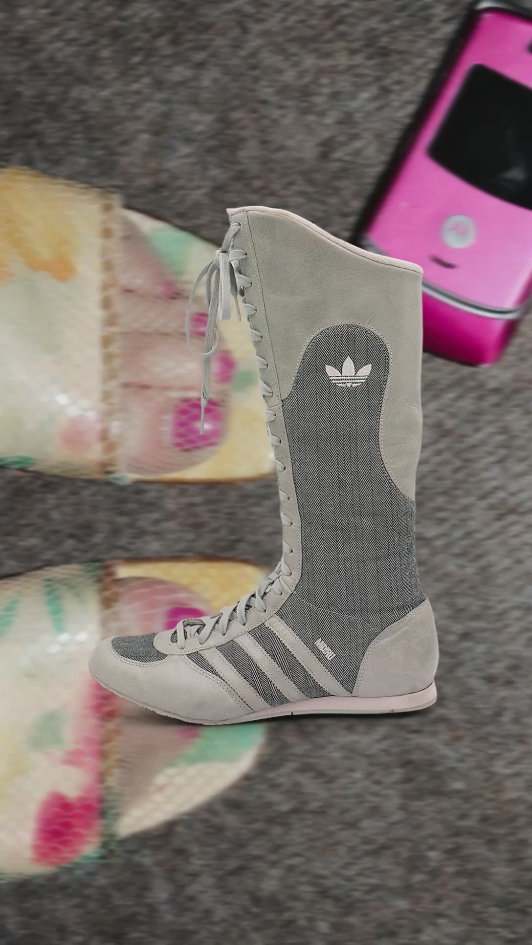 Gray Adidas Midiru high boxing / moto boots.